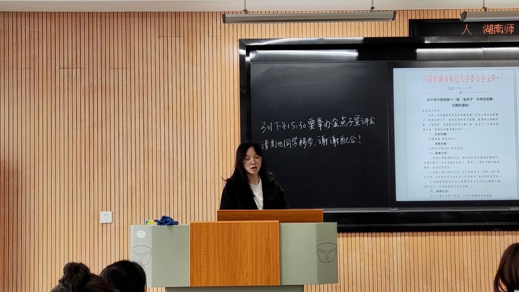 (通讯员 谢蕙如 杨湘荣)10月23日下午,教科院团委青创部于田家炳教育书院301教室开展金点子创业大赛宣讲会。教科院20级学生杨宇霏担任活动主讲人,院团委负责人谭梦,21级辅导员庞瑞宇出席讲座,教科院2021级部分新生参与此次讲座。讲座由青创部21级干事黄希主持。