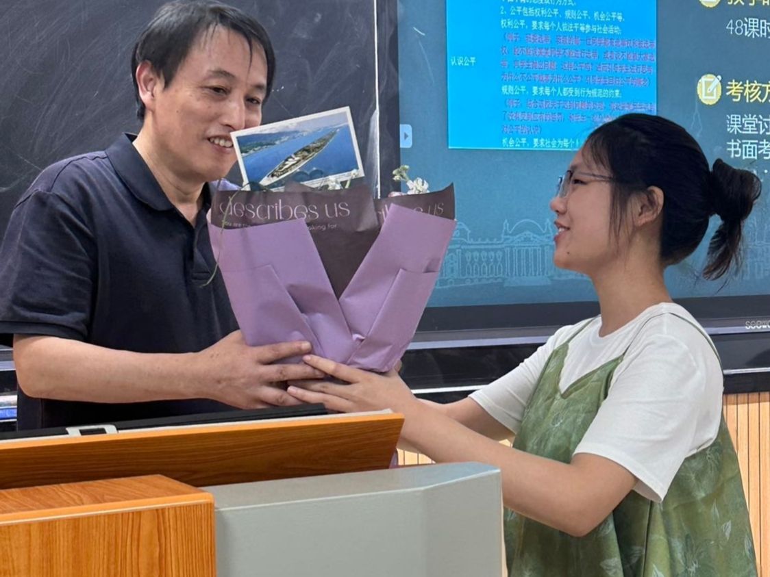 “纸短情长·花香寄情”活动是以班级为单位,号召同学们在明信片上写下对老师的祝福并制作扭扭棒花束,由班长统一赠与教师节当天的授课老师,收到礼物的老师们纷纷露出了幸福的笑容。