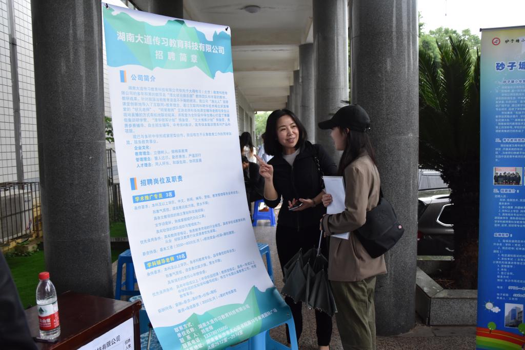 此次招聘会共有湖南光琇医院、湖南省中南艺术学校、长沙市雨花区砂子塘小学、长沙市雨花区砂子塘湘天小学、深圳市南山区纯水岸幼儿园、长沙市雨花区万婴蒙氏幼稚园、深圳市南山实验集团双玺第二幼儿园、长沙市岳麓区金色梯田卓越幼儿园、岳麓区用心教育培训学校、湖南乐听科技有限公司、湖南欧思瑞教育管理有限公司、湖南研必果教育科技有限公司、湖南三真文化咨询有限公司、湖南悦仁教育咨询有限公司、湖南科润文化传播有限公司、湖南锦华国际旅行社有限公司等16家单位参加。