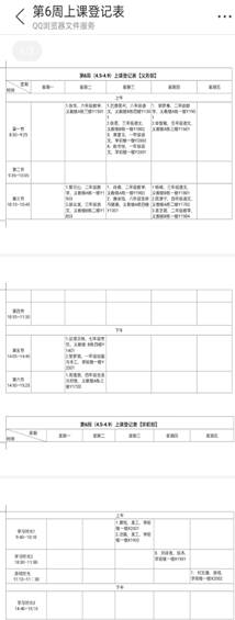 (2)课程组:主管队员上课课程统计与每周课表的安排与公示和实习队员的每周日志、听课记录的检查做反馈,目前已经完成授课周以来的3个课表的制作。