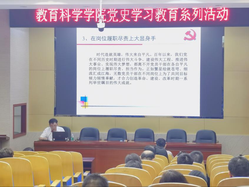 此次党课是教科院党史学习教育之一,教科院全体教职工党员参加。与会人员纷纷表示受益匪浅。