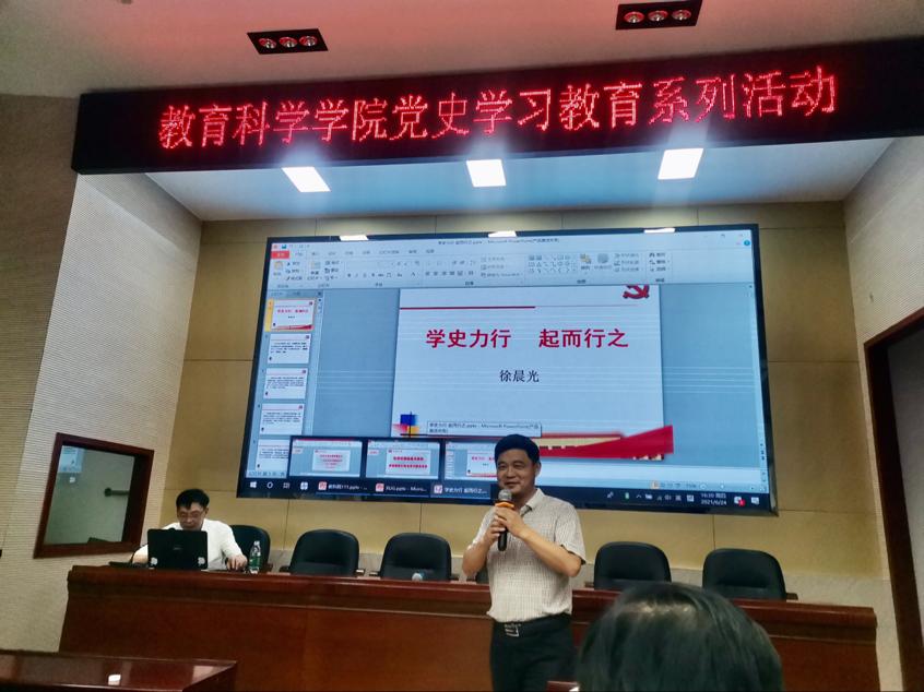 (通讯员 谭梦)6月24日下午3点,徐晨光教授以《学史力行 起而行之》为题为教育科学开元平台(中国)科技公司教职工党员讲授党课,教科院院长刘铁芳主持。